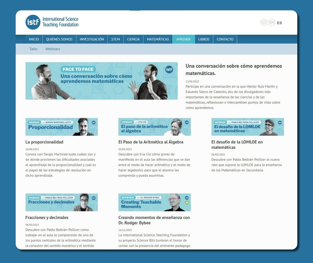 La International Science Teaching Foundation (ISTF) es una organización sin ánimo de lucro, comprometida con la mejora de la educación a escala global. Nuestra misión es fomentar prácticas educativas basadas en la investigación científica sobre cómo aprenden las personas, proporcionando herramientas que optimicen la enseñanza y el aprendizaje.
